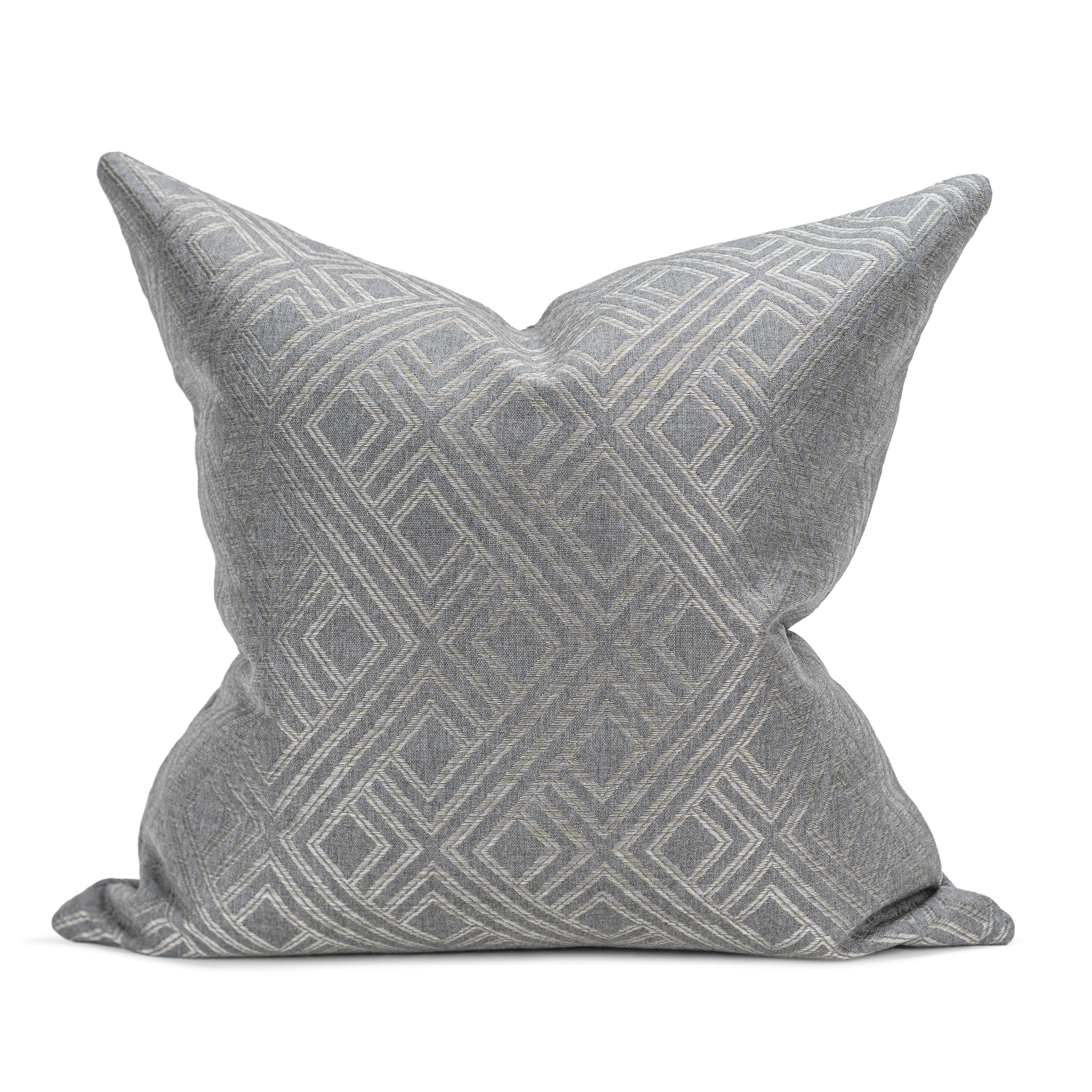 Woven from high-quality acrylic fabric, this pillow boasts a sophisticated geometric pattern that interlaces soft silver and ash gray tones, creating a serene and inviting aesthetic. Its durable material offers the plushness of down with the resilience to withstand the elements, making it a perfect addition to both indoor and outdoor settings. This pillow is designed to seamlessly blend with a variety of decor styles, while providing an extra layer of comfort wherever you choose to relax.